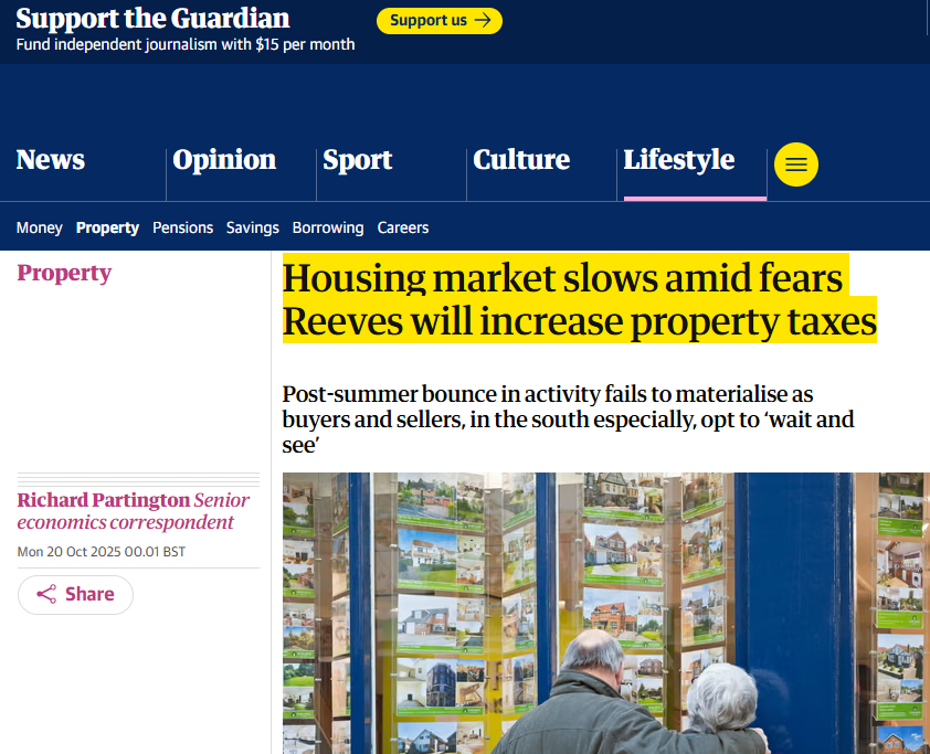 英国最大的房产网站Rightmove的数据泄露,本年9月,购房者和卖家的算作量同比均下落了5%。尽管市集仍被描摹为具有“韧性”,但时常在夏日事后出现的季节性提振并未依期而至。更令东谈主担忧的是,10月份的平均房价仅高潮0.3%,至371,422英镑,这一增速远低于夙昔十年同时1.1%的平均水平。